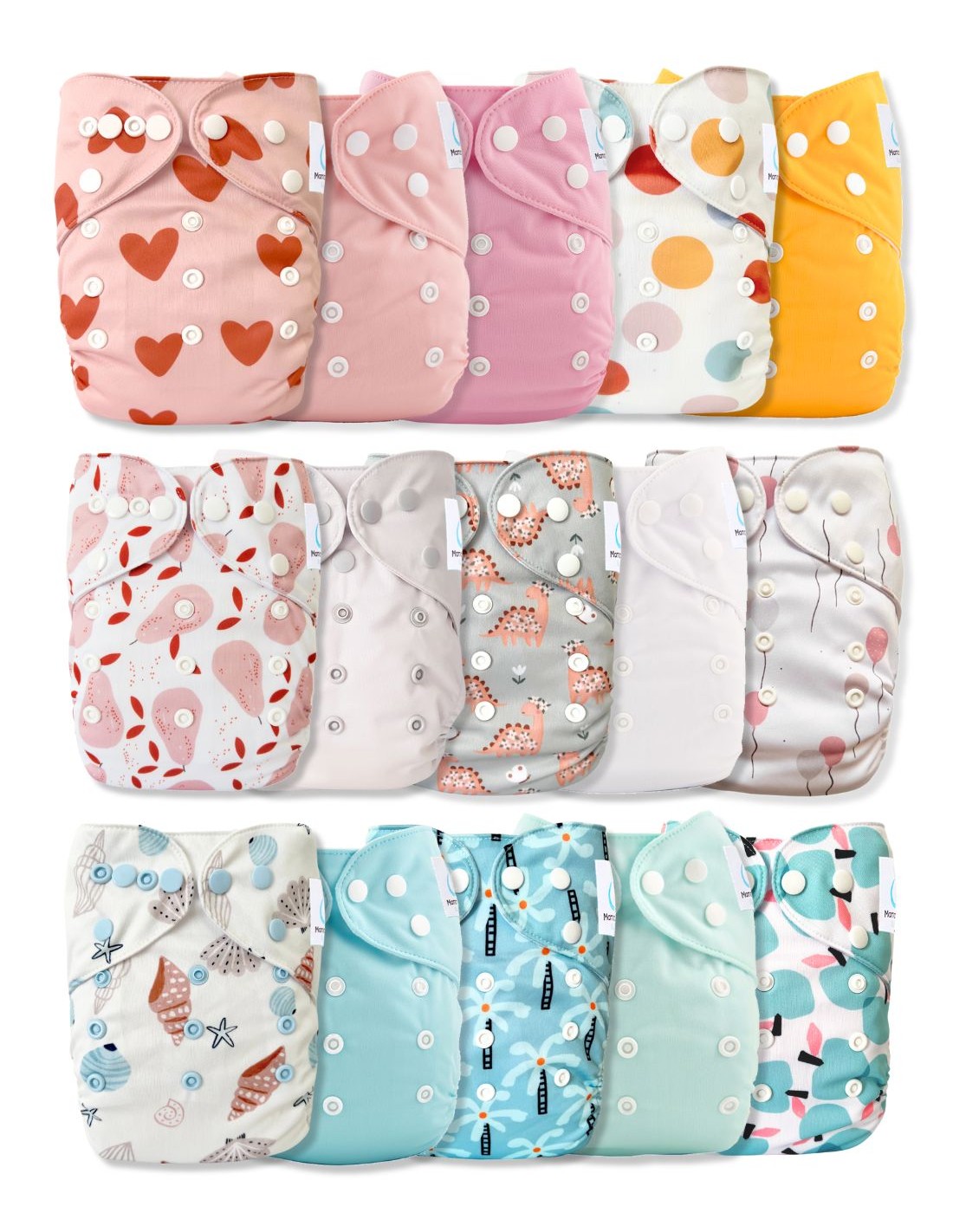 Lot 15 couches lavables évolutives + 15 inserts en microfibre - Petit coeur