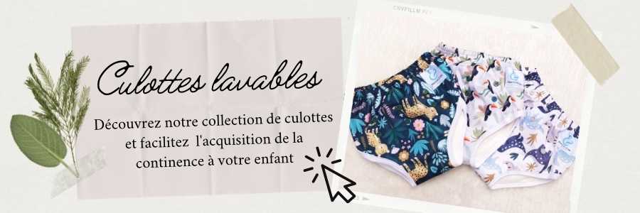 Une culotte d'apprentissage, c'est une culotte qui permet d'éviter les petits accidents. Elle est dotée d'un cœur absorbant qui permet d'absorber les petits pipis. L'extérieur en PUL permettent de garder les vêtements de votre enfant au sec. Ainsi, nul besoin de changer le pantalon, les chaussettes etc. Si votre enfant s'oublie, il vous suffit de ne changer que la culotte !