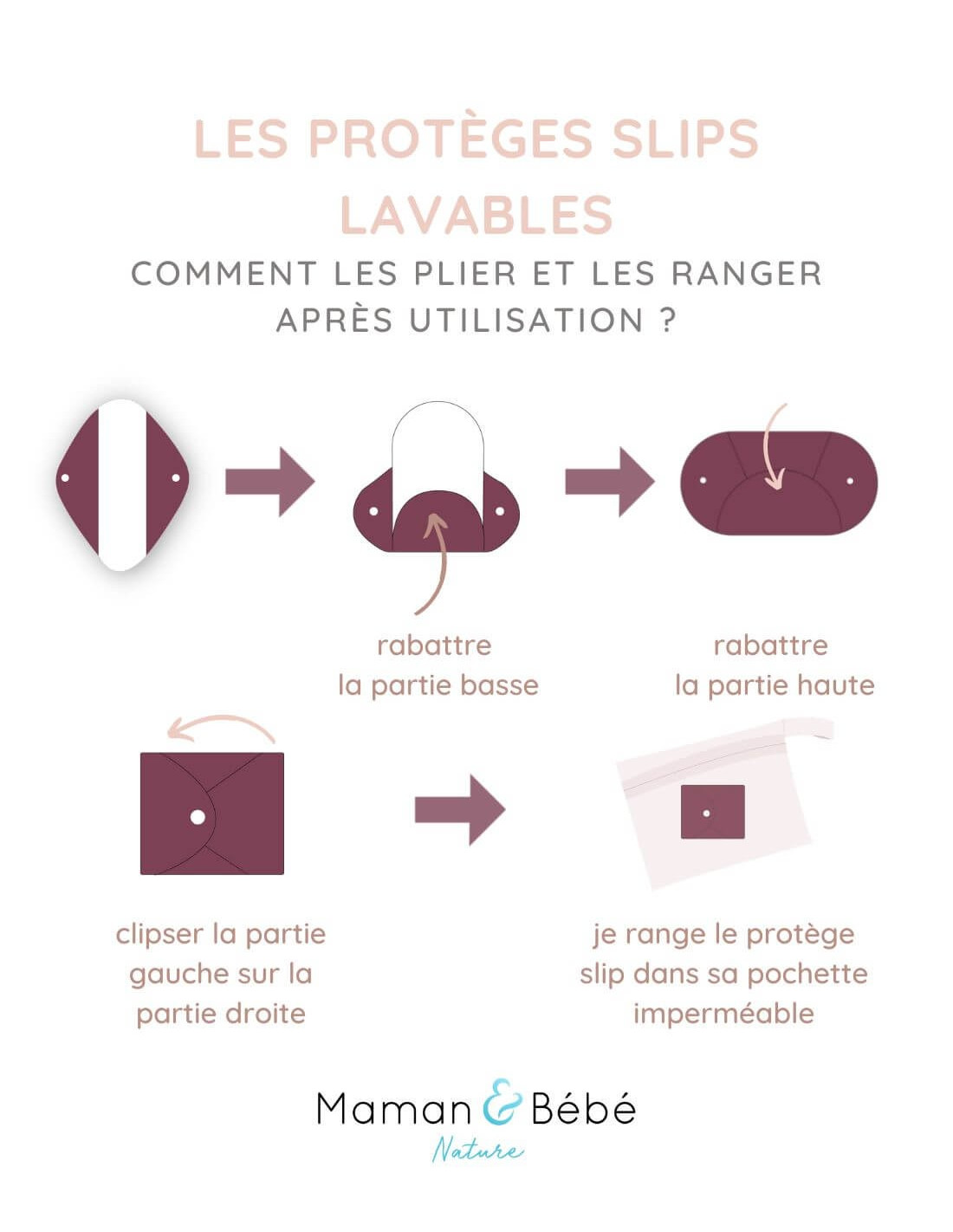Elles sont très faciles à laver : elles passent en machine à 40°. L'utilisation d'un filet à linge est recommandée, vous trouverez notre sélection en cliquant ici. Après usage nous vous conseillons de stocker les protèges slips usagés dans une petite pochette imperméable en attendant de les mettre à la machine.