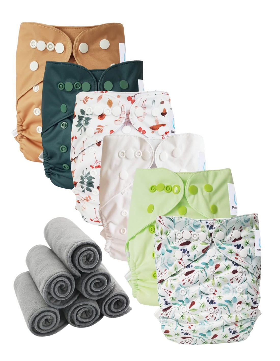 Lot 6 couches lavables TE2 + 6 inserts bambou pression - nature