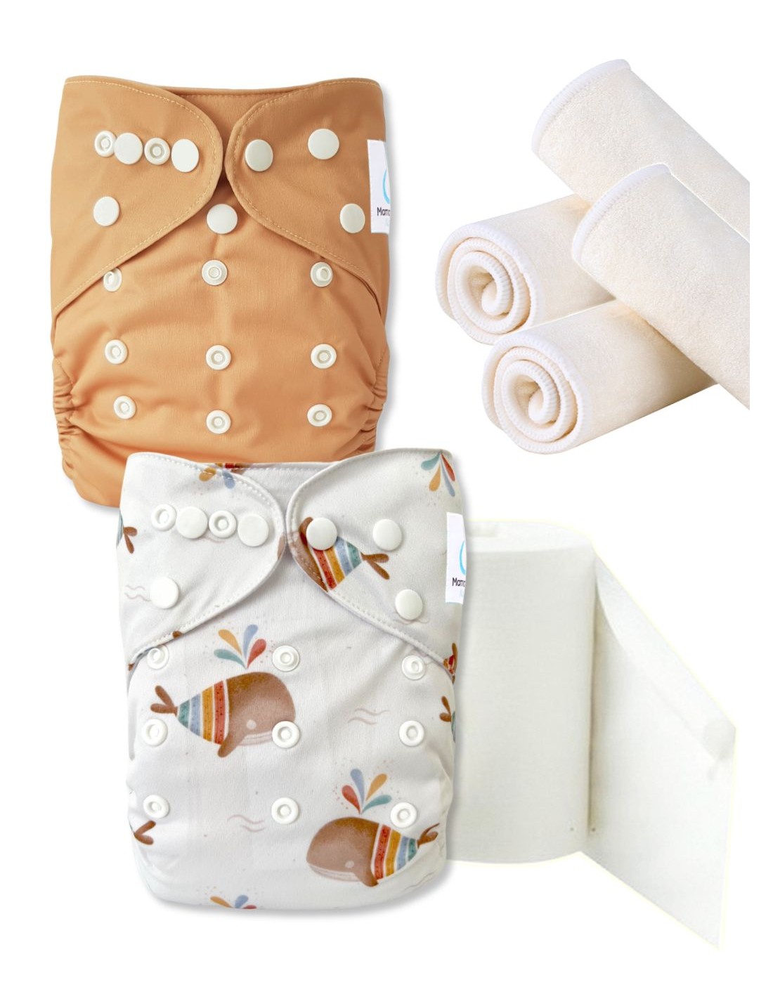 Nolwene la Baleine - Pack Essai Couches lavables TE2 + inserts et voiles