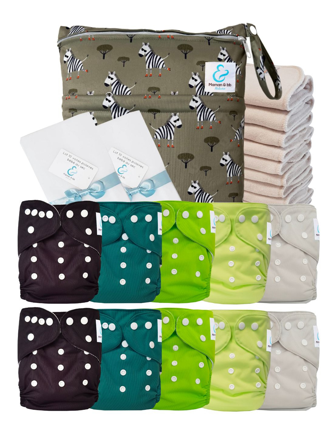 Pack Premium Sensitive : lot de 10 couches lavables TE1 + inserts coton + voiles + sac - Automne
