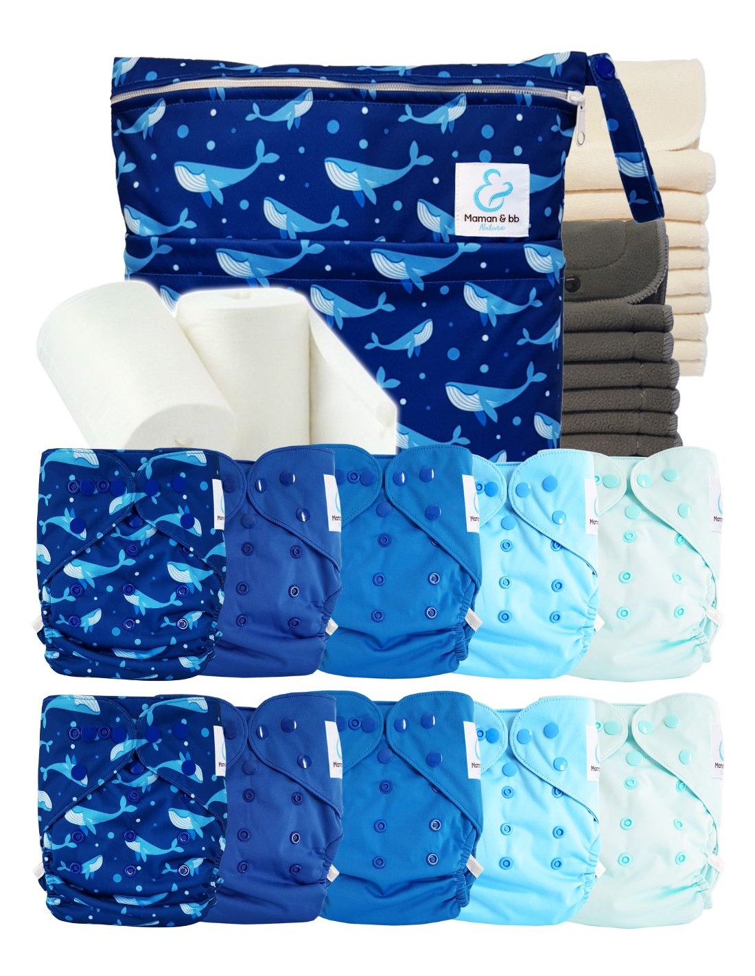 Pack complet Bambou TE2 - Couches lavables + inserts bambou et Inserts - Nino le Baleineau
