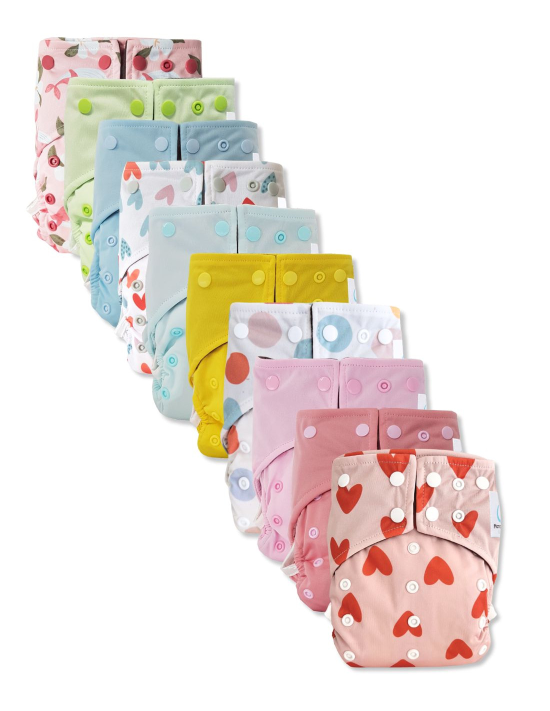 Lot 10 Couches lavables TE1 intégrales en bambou - Petit coeur
