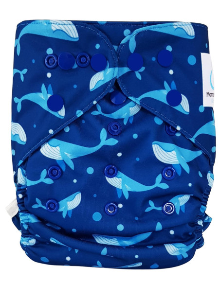 Nino le Baleineau - Te2 Couche lavable évolutive à double gousset