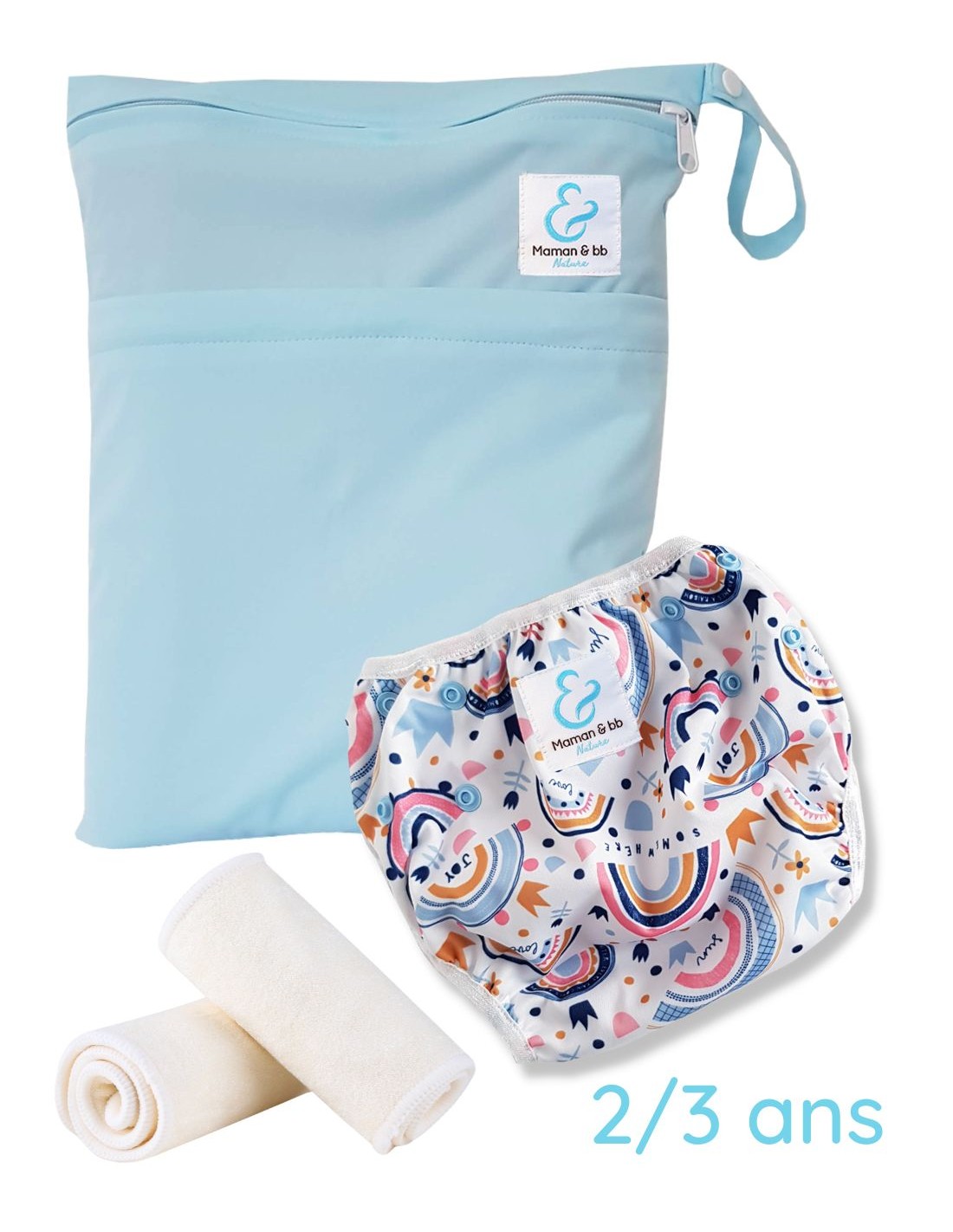 Kit Baignade bébé 2/3 ans - Couche maillot de bain lavable + sac imperméable + inserts - Joy