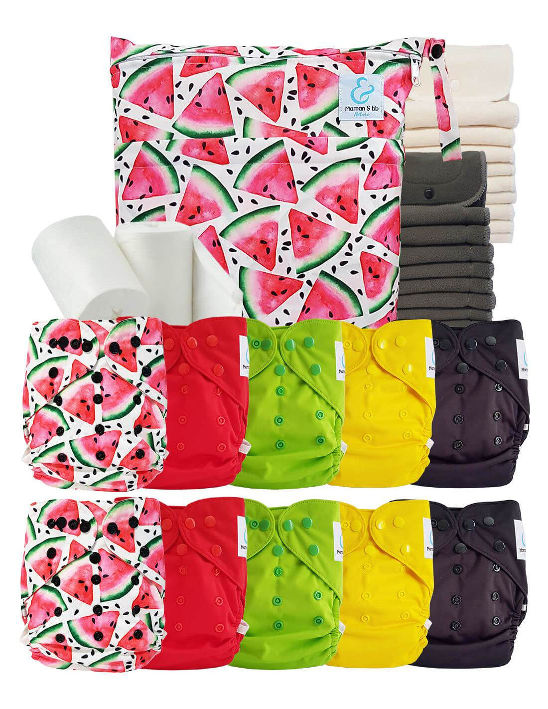 Pack complet Bambou TE2 - Couches lavables + inserts bambou et Inserts - Watermelon