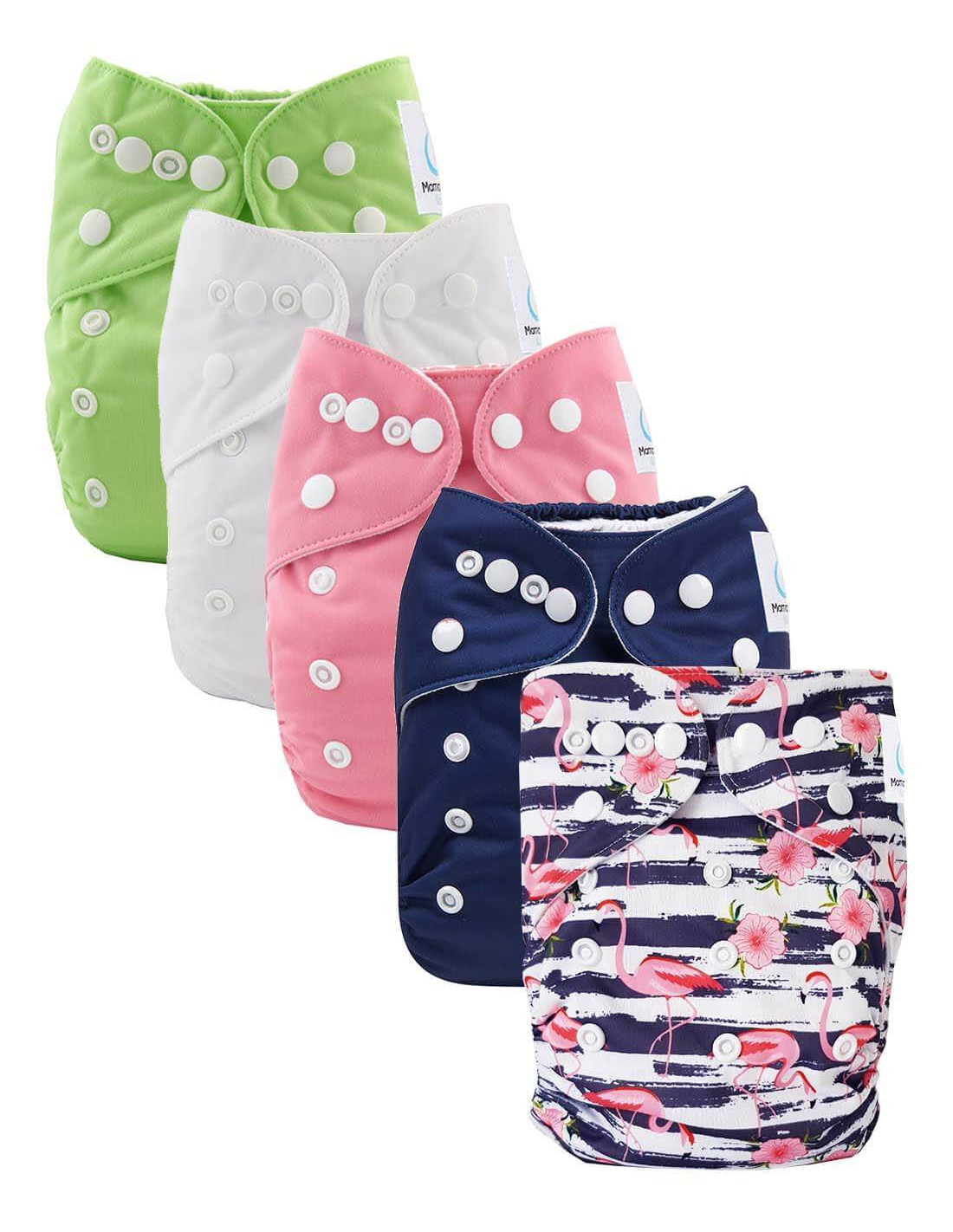 Lot 5 couches lavables évolutives TE1 + 5 inserts en microfibre - Flamingo