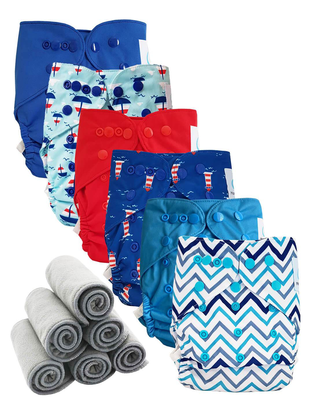 Lot 6 couches lavables TE2 + 6 inserts bambou pression - Sea
