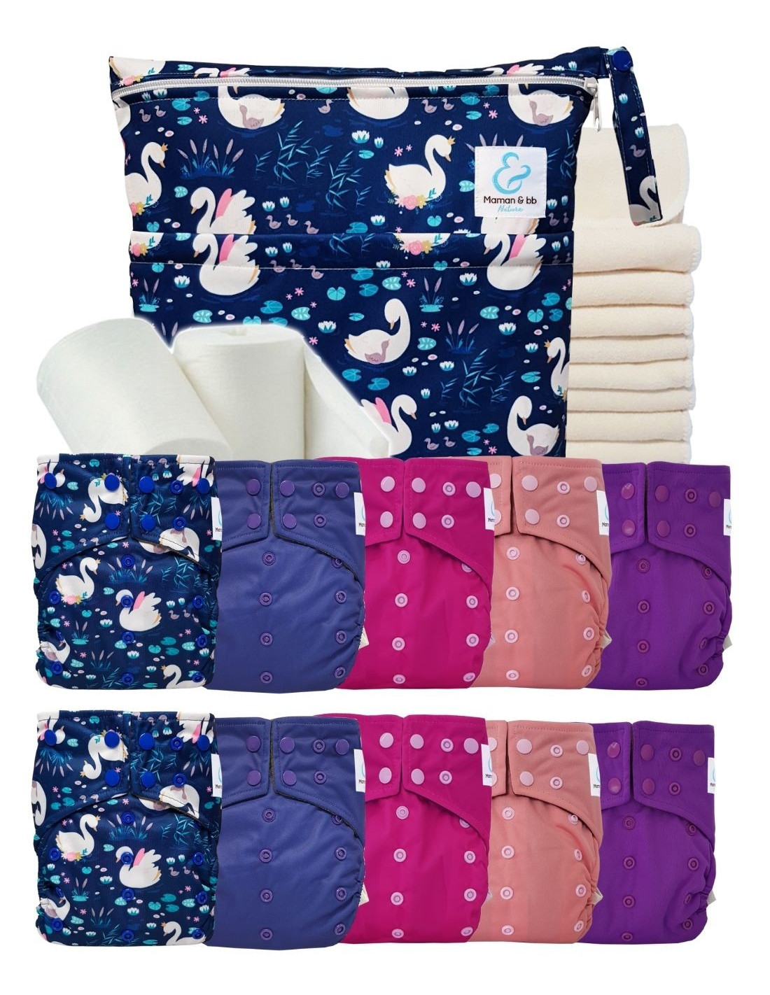 Ce sac se compose de deux poches : une grande poche qui vous permettra de transporter vos couches et inserts souillés , et une plus petite pour y ranger vos couches et inserts propres . La fermeture des poches se fait par zip. Ce sac est idéal pour transporter et faciliter l'utilisation de vos couches lavables en dehors de la maison.