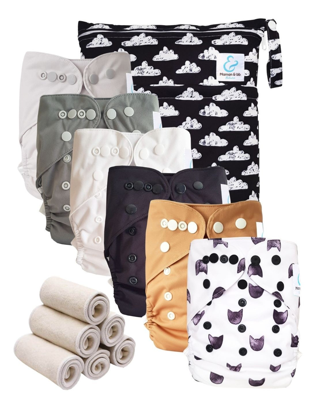 Pack Essentiel Bambou TE2 - 6 couches lavables et insert - Cats