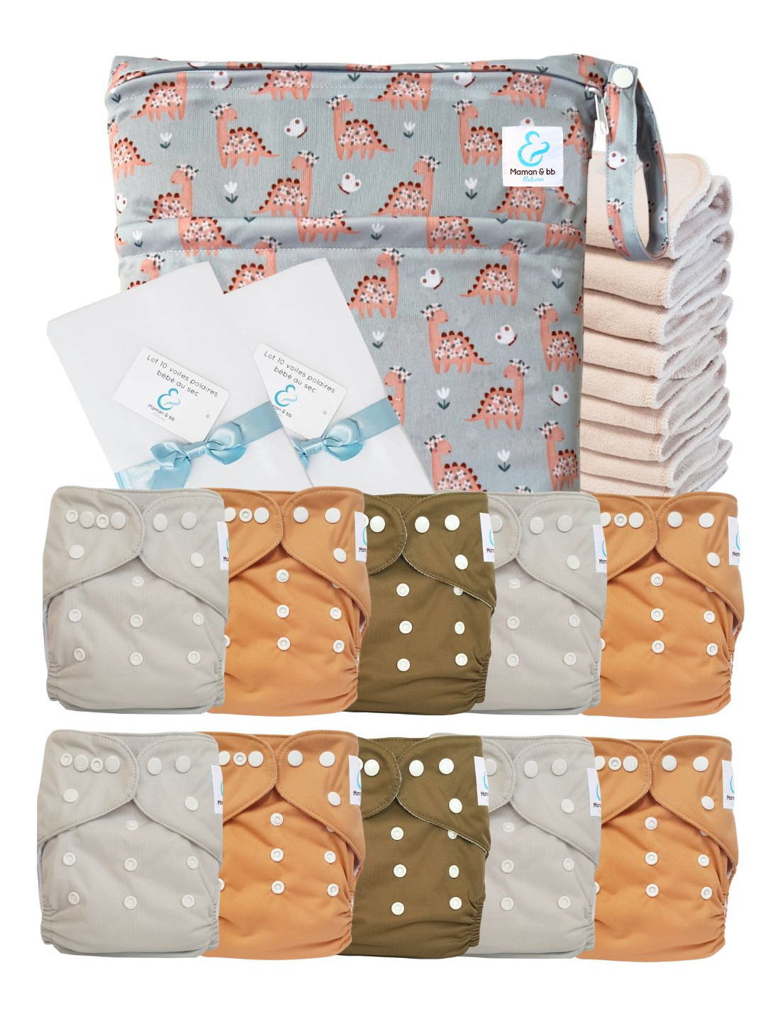 Pack Premium Sensitive : 10 couches lavables TE1 + inserts coton + voiles + sac imperméable - Margot