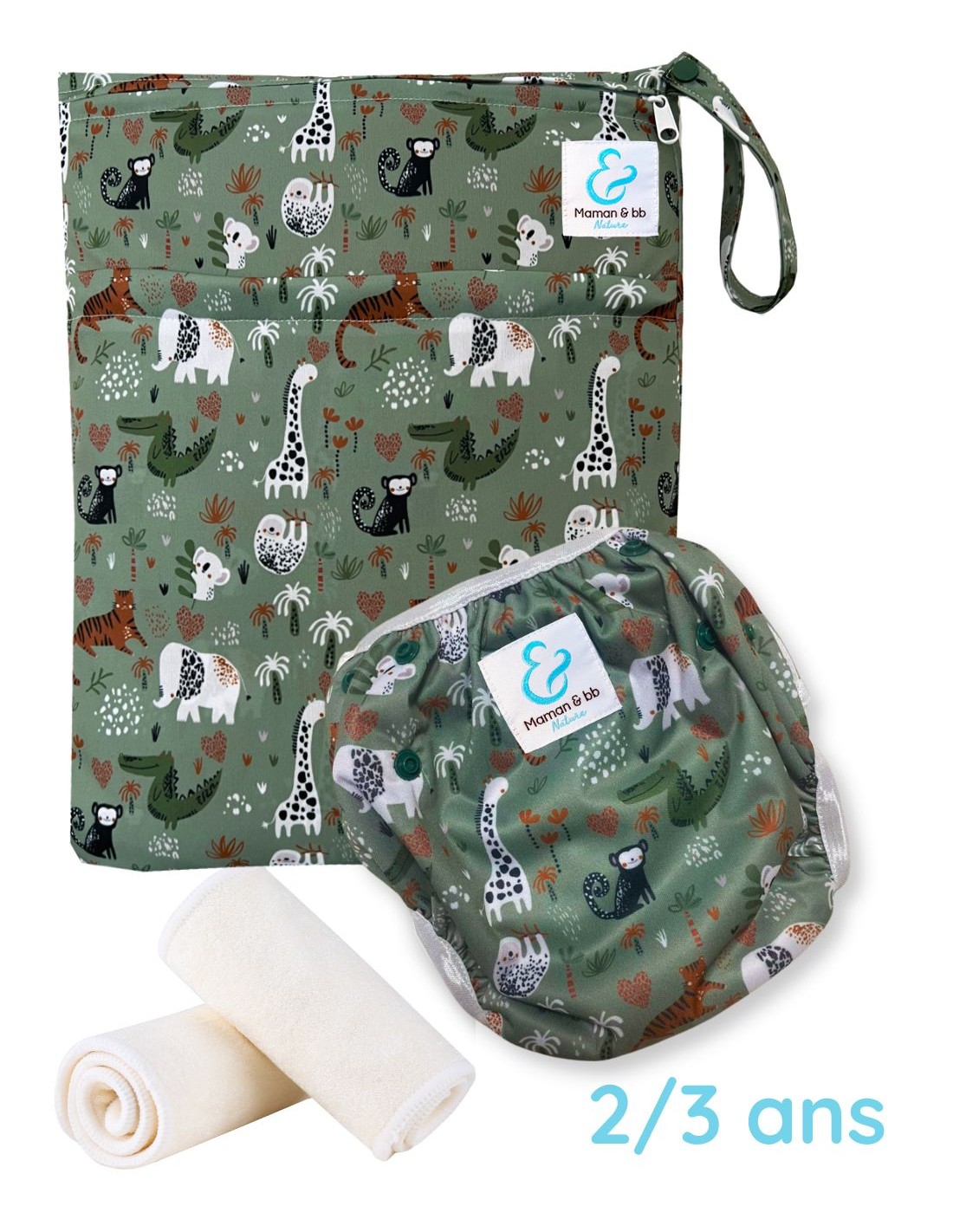 Kit Baignade bébé 2/3 ans - Couche maillot de bain + sac + absorbants - Jungle