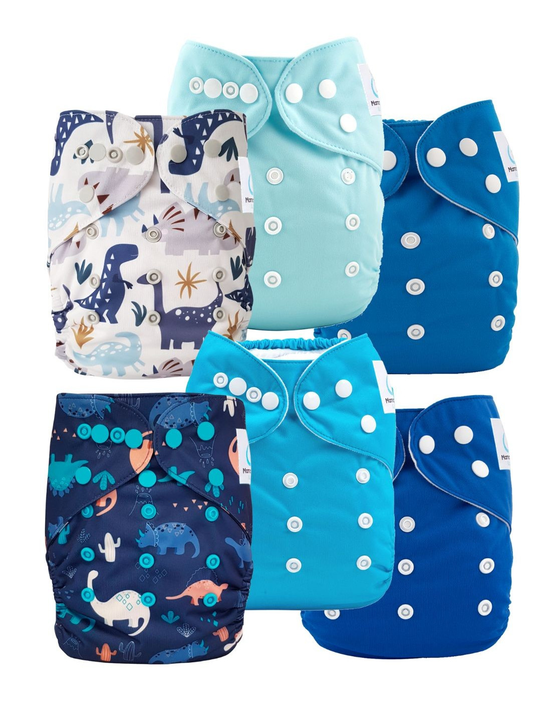 Lot de 6 couches lavables Te1 + 6 inserts microfibre - Blue Jurassik