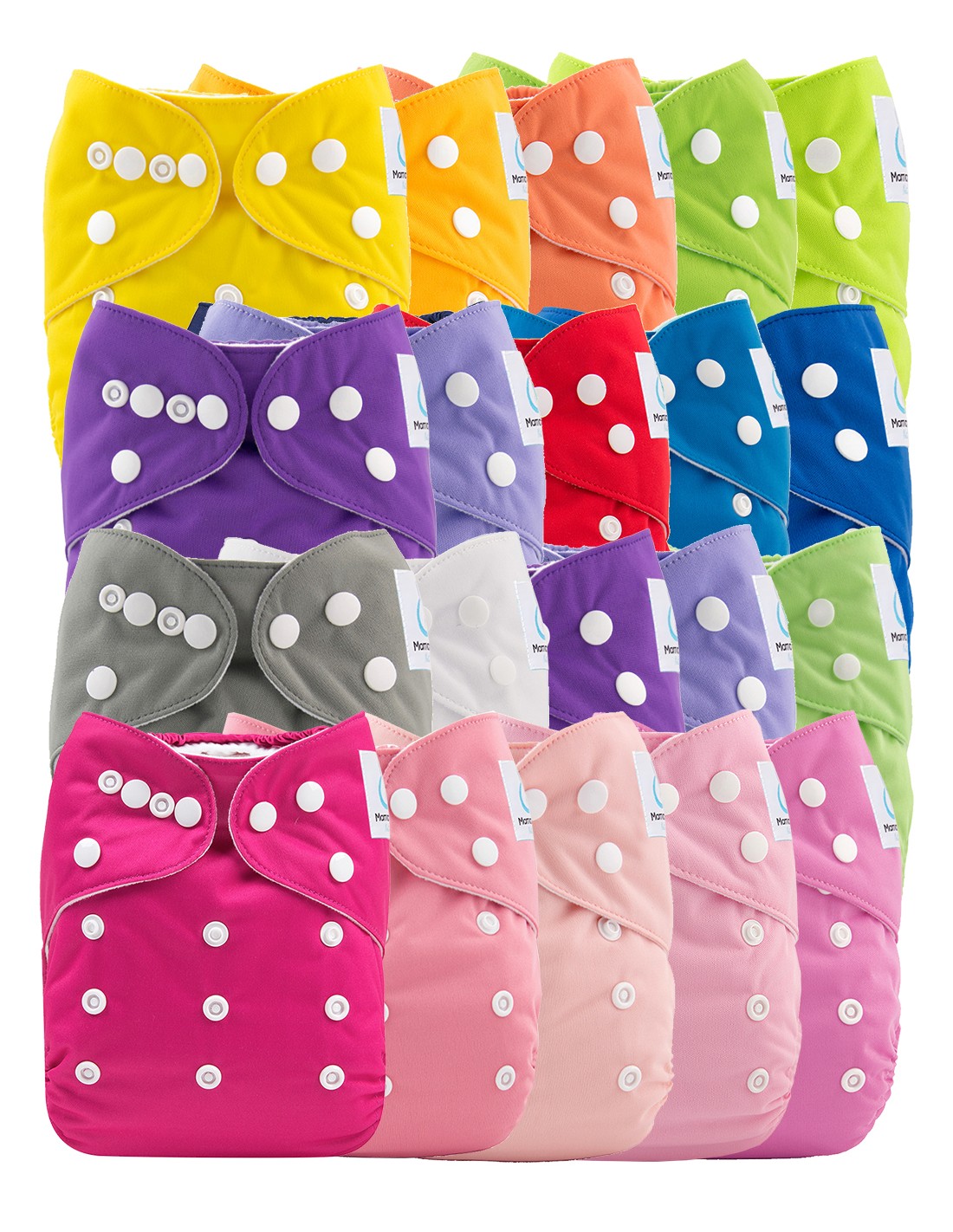 Lot de 20 couches lavables Te1 + 20 inserts en microfibre - Tons roses