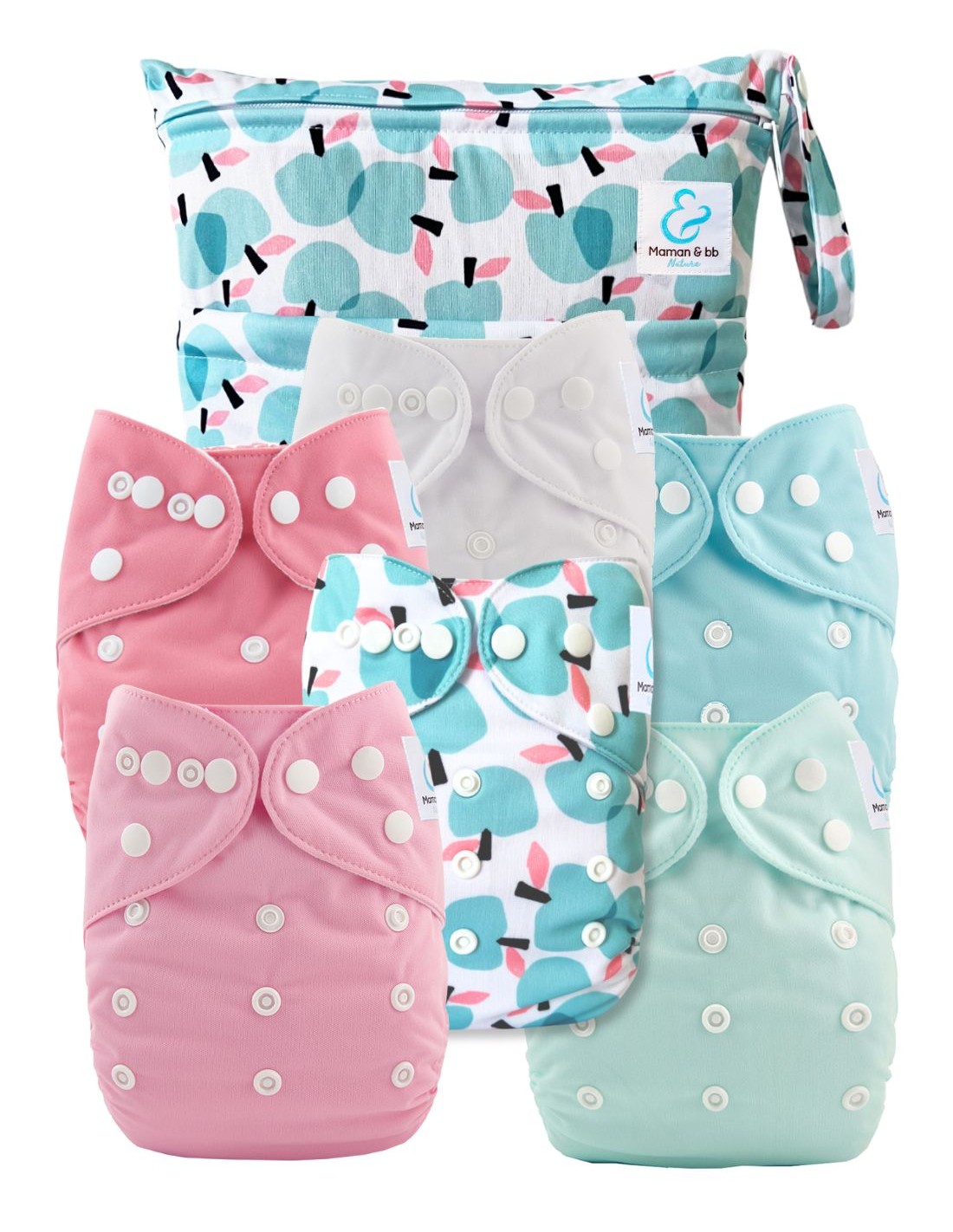 Kit essentiel - 6 couches lavables TE1 + absorbants + sac imperméable - Apples