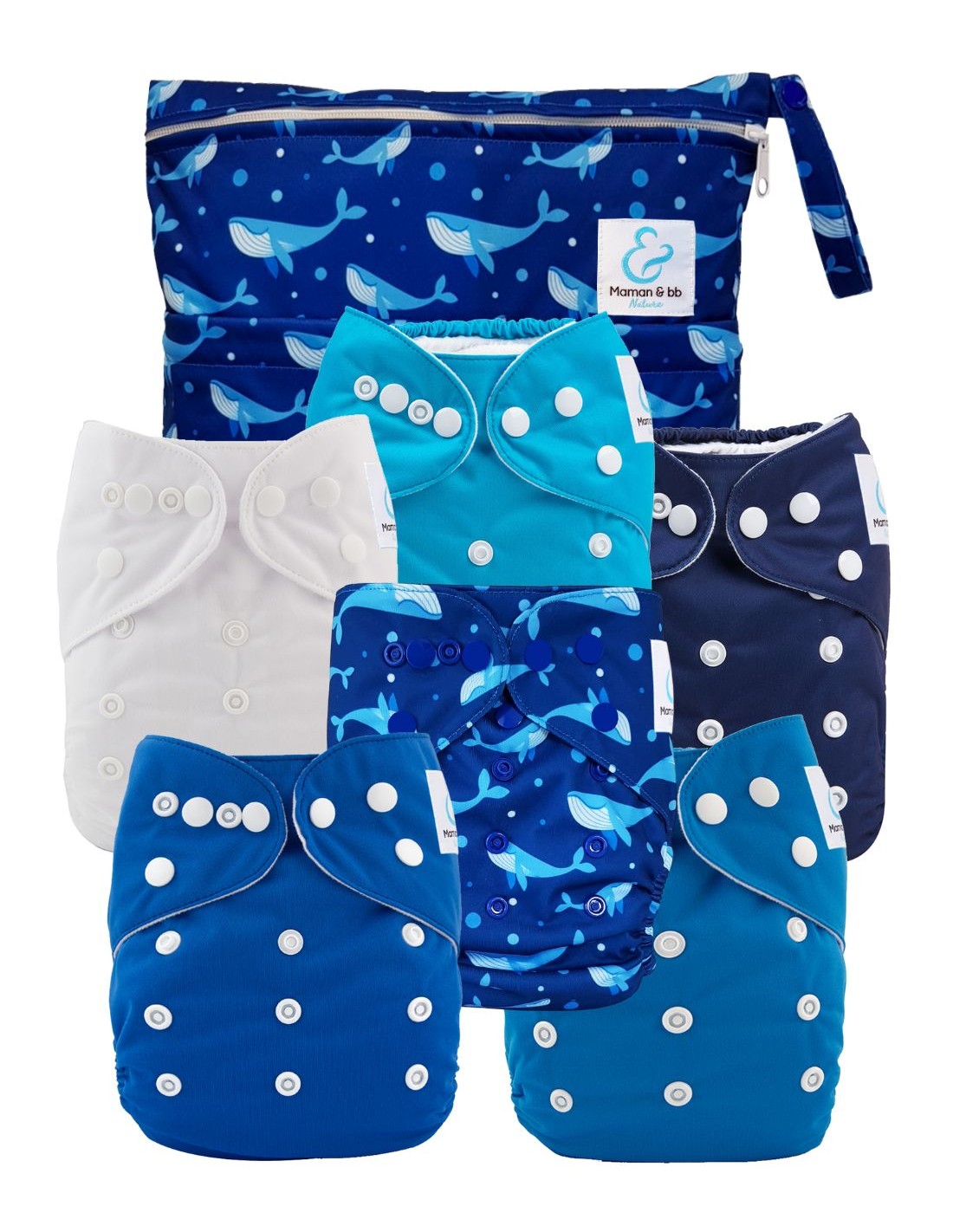 Kit essentiel - 6 couches lavables TE1 + absorbants + sac imperméable - Nino le Baleineau