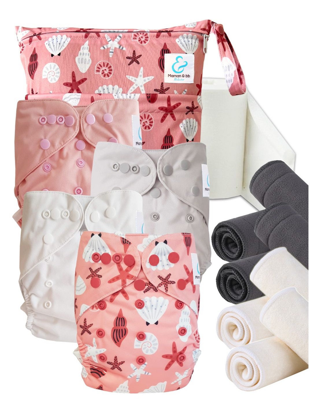 Start and Go TE2 Bambou - Kit 4 couches lavables TE2 - Coquillages