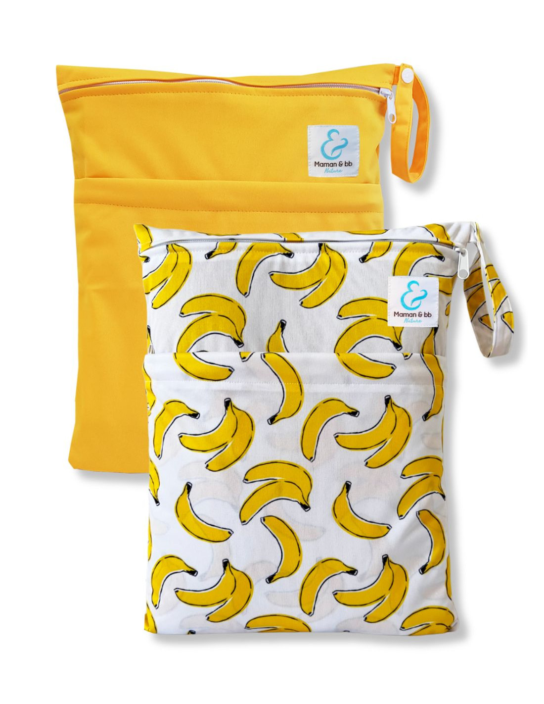Lot 2 Sacs imperméables pour couches lavables 2 poches - bananas