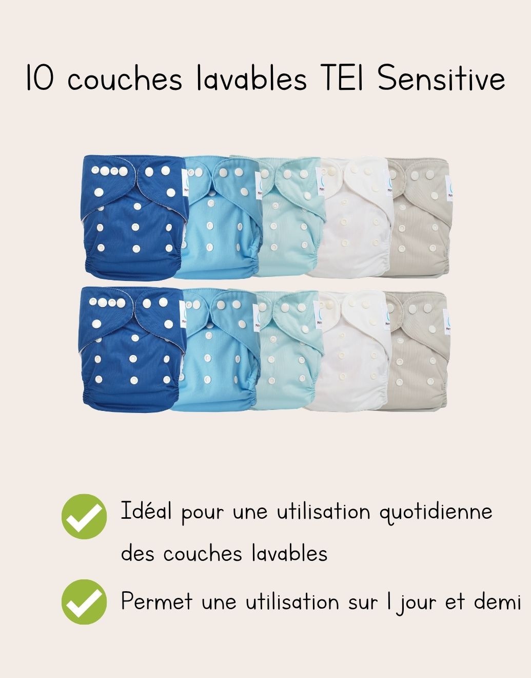 Lot 10 Couches lavables tout en un TE1 évolutives - Sensitive - Sweet