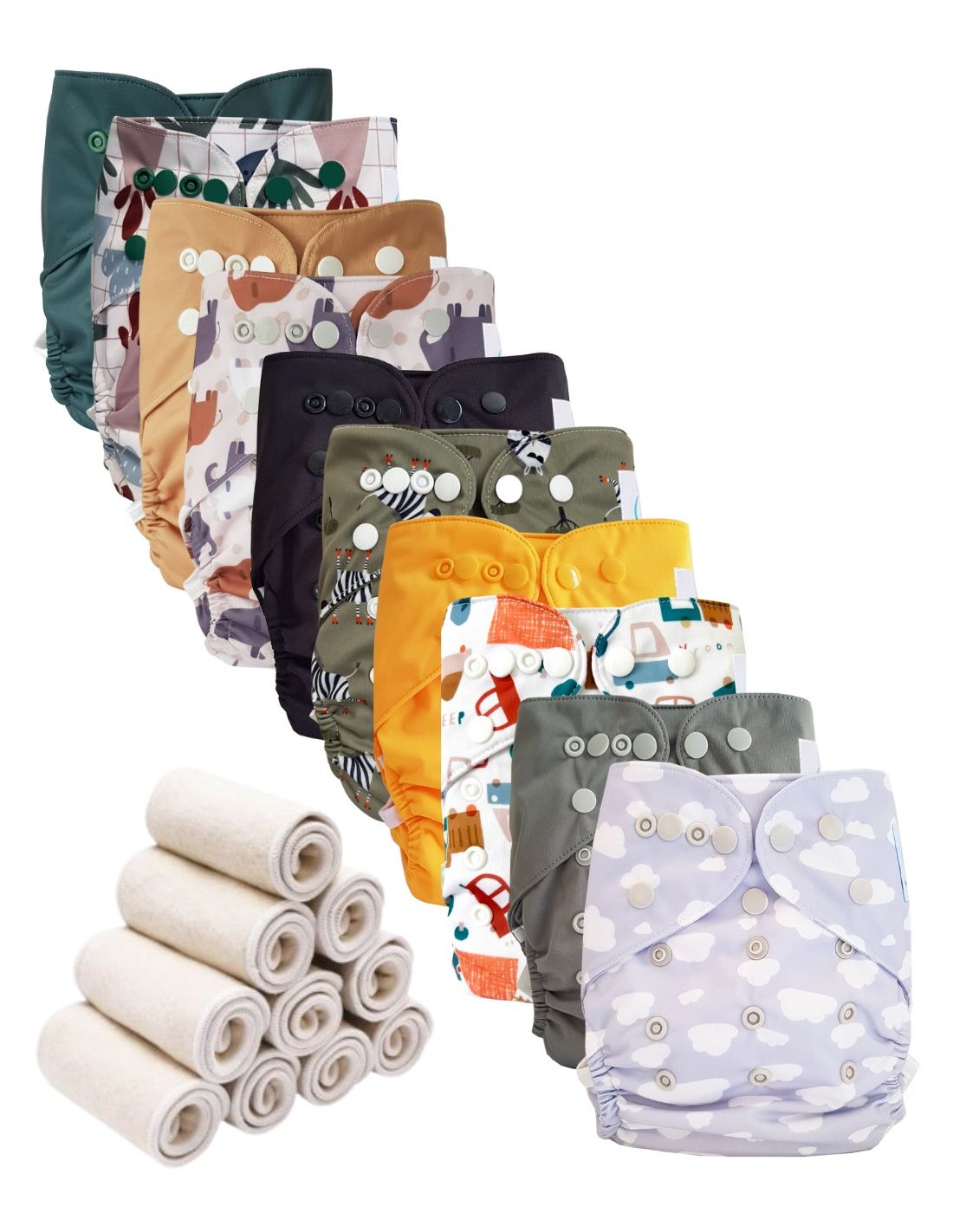 Bambou - Lot 10 TE2 couches lavables + 10 inserts bambou - Clouds
