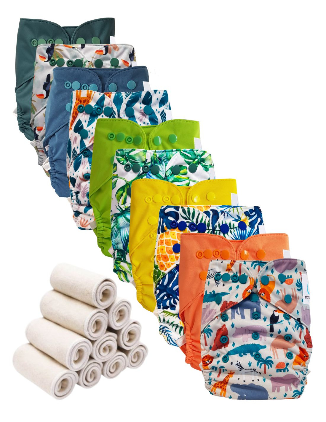 Bambou - Lot 10 TE2 couches lavables + 10 inserts bambou - Toucan