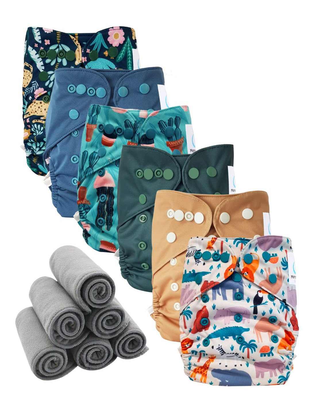 Lot 6 couches lavables TE2 + 6 inserts bambou - jungle