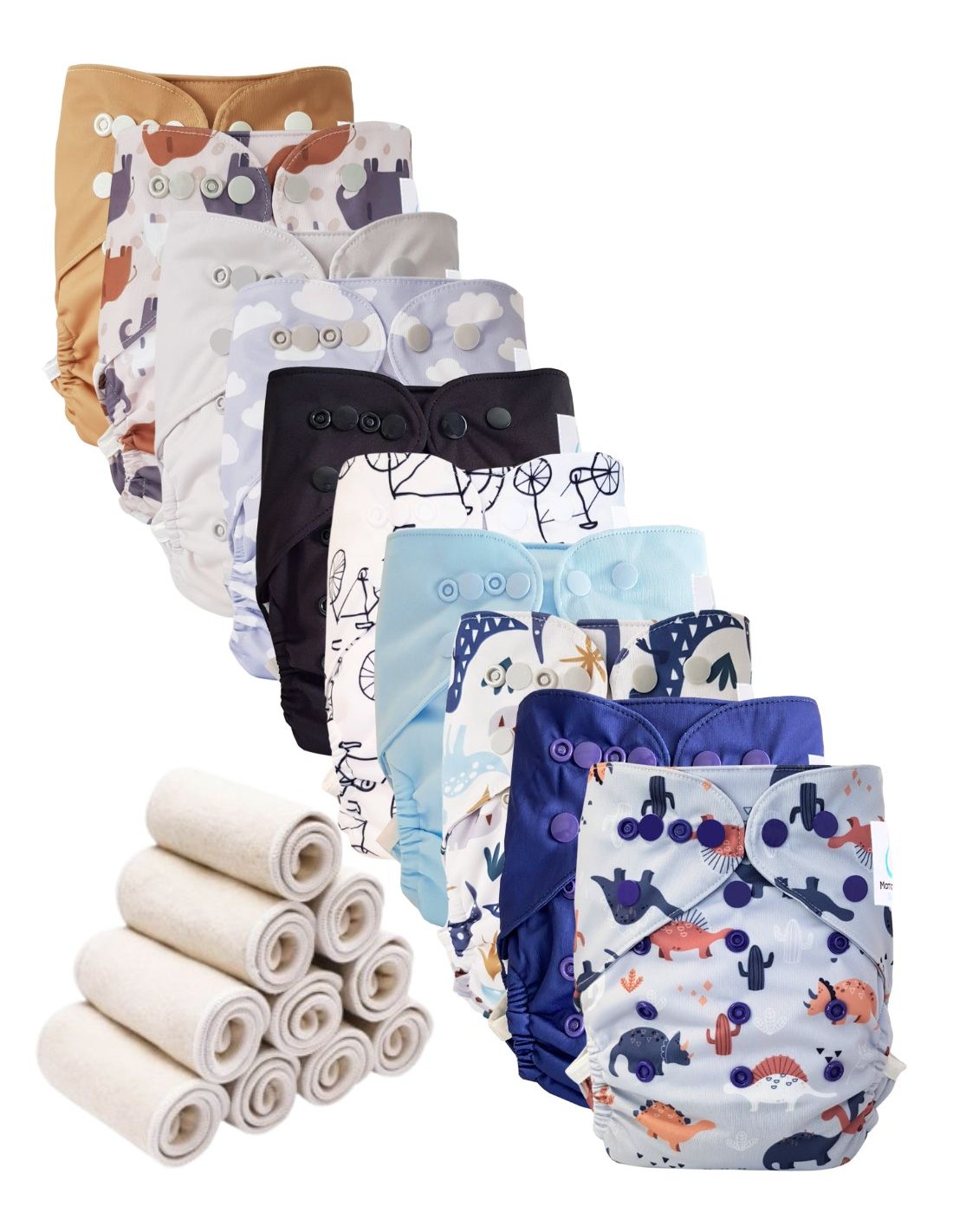 Bambou - Lot 10 TE2 couches lavables + 10 inserts - Dinos