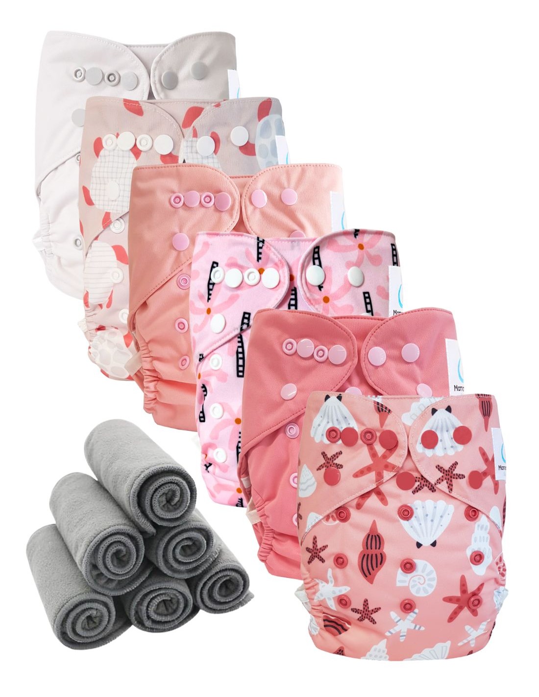 Lot 6 couches lavables TE2 + 6 inserts bambou - Coquillage