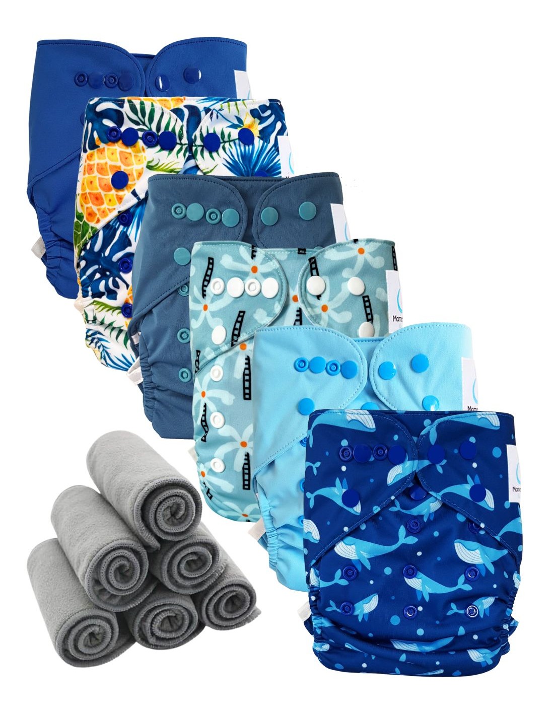 Lot 6 couches lavables TE2 + 6 inserts bambou - Ocean