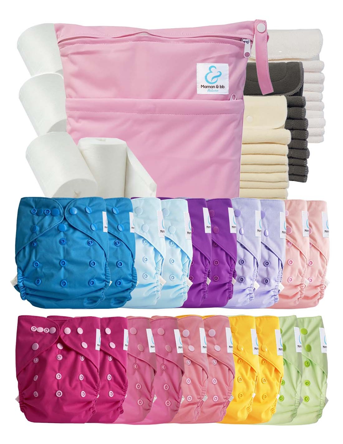 Mega pack : lot de 20 couches lavables TE2 + 30 inserts + 400 voiles + sac imperméable - Flore