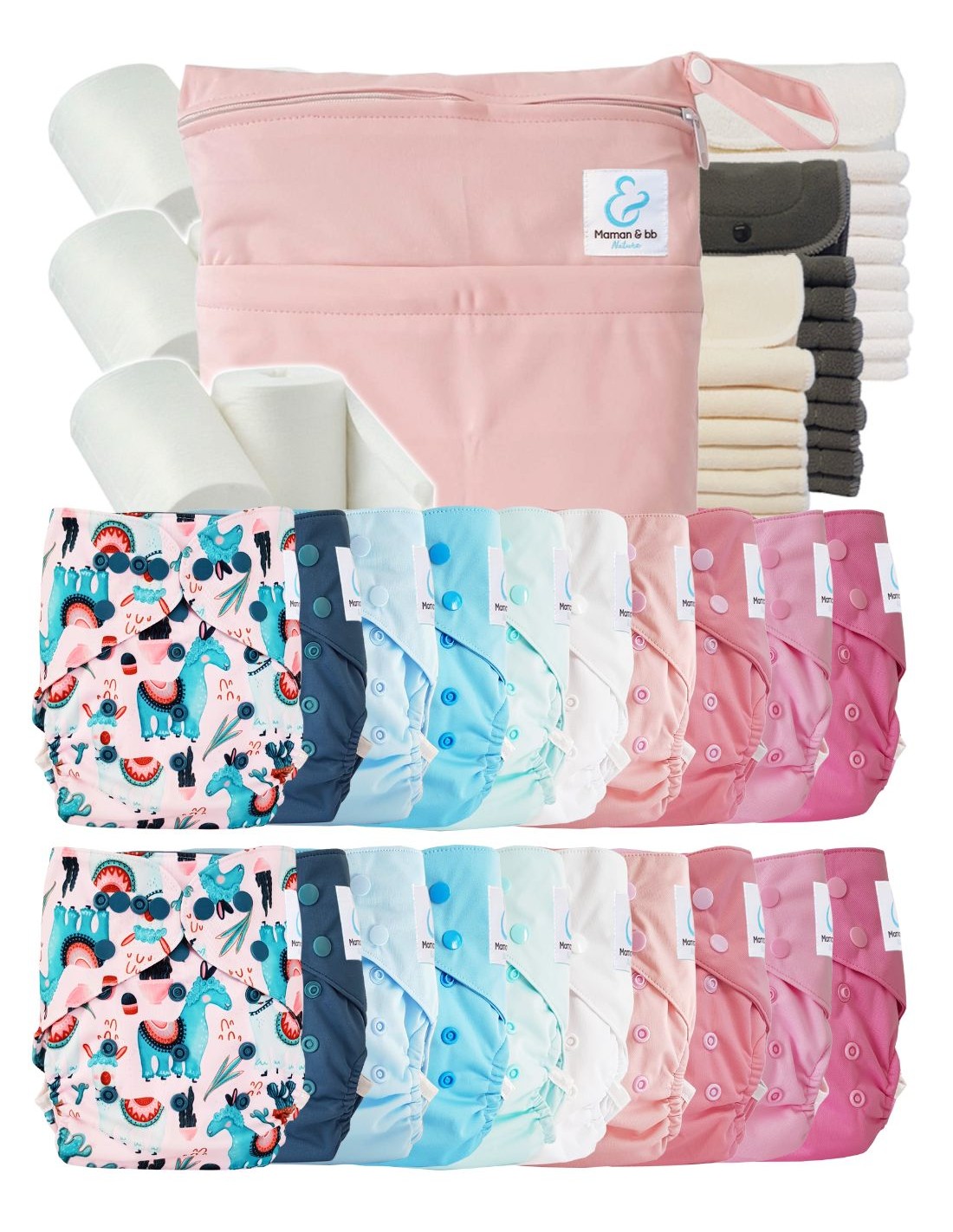 Mega pack : lot de 20 couches lavables TE2 + 30 inserts + 400 voiles + sac imperméable - Alma