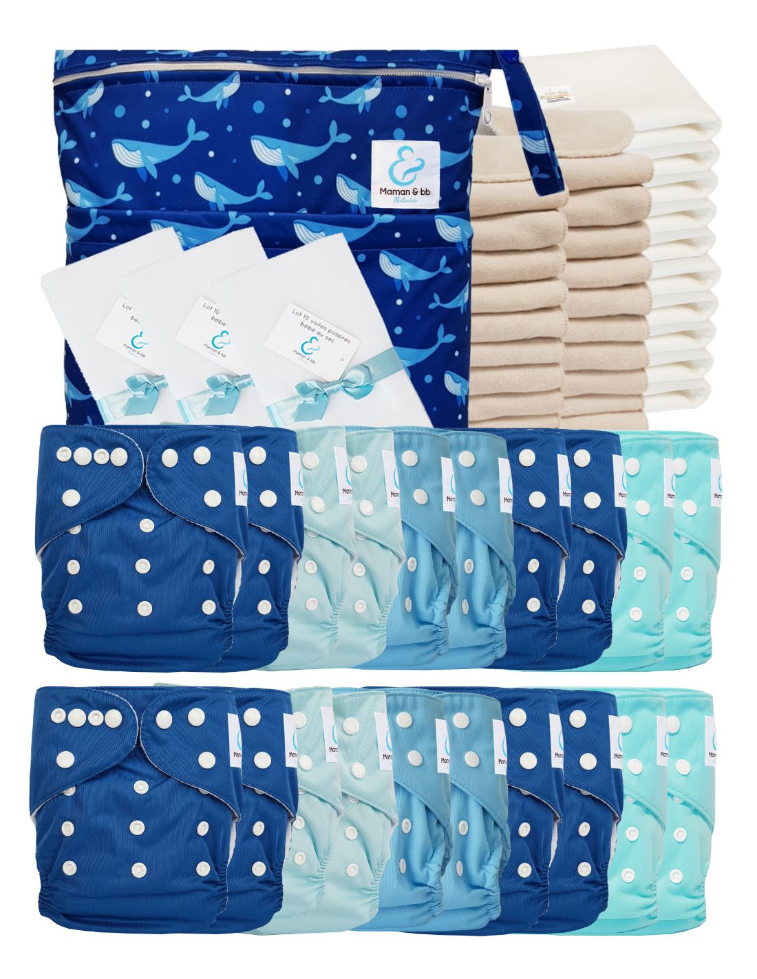 - Lot de 20 inserts en Coton et Microfibre certifiés Oeko Tex® 100 classe 1 (inclus dans les couches)