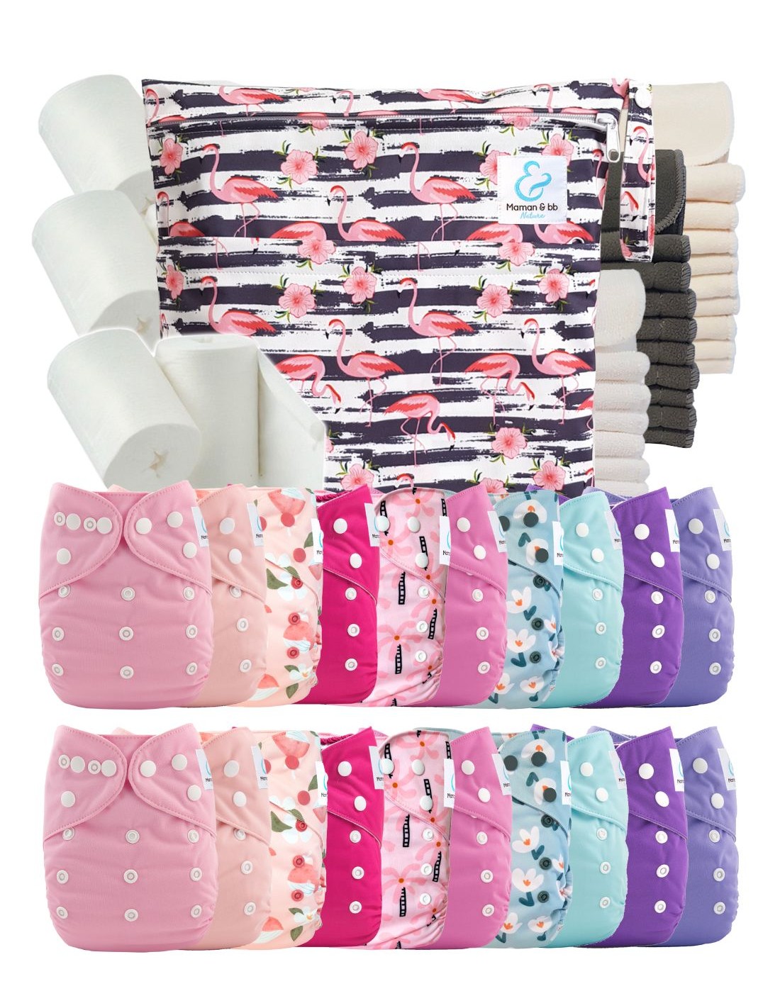 Mega pack 20 couches lavables + inserts + voiles de protection et son sac imperméable