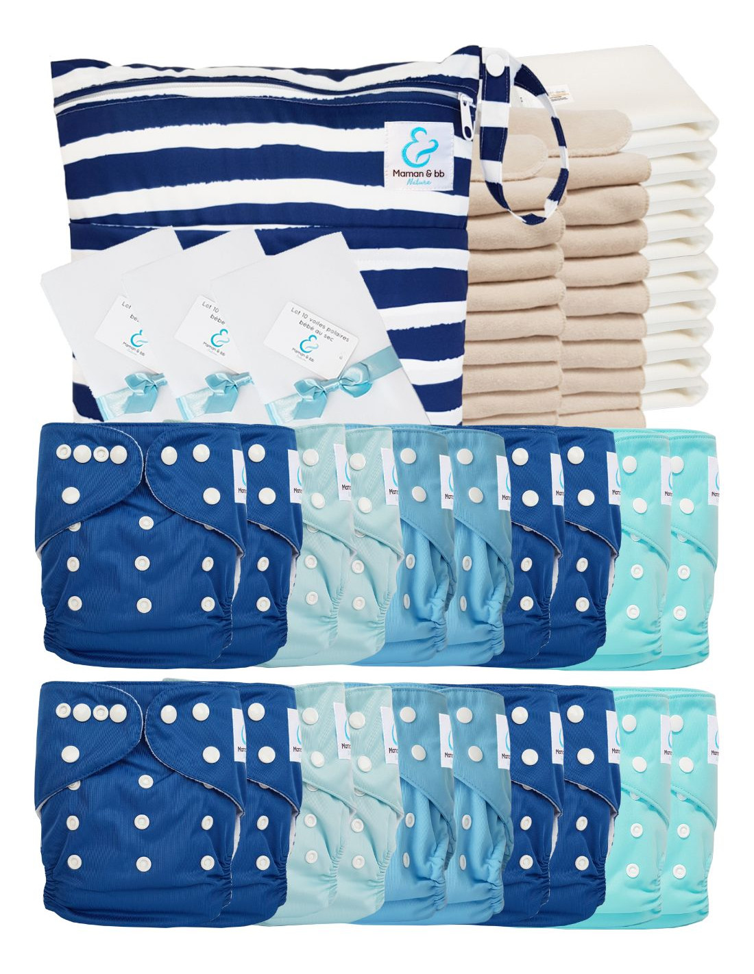 - Lot de 20 inserts en Coton et Microfibre certifiés Oeko Tex® 100 classe 1 (inclus dans les couches)