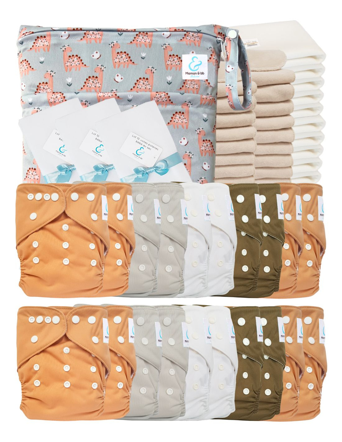 Mega pack 20 couches lavables TE1 + inserts + voiles de protection et son sac imperméable