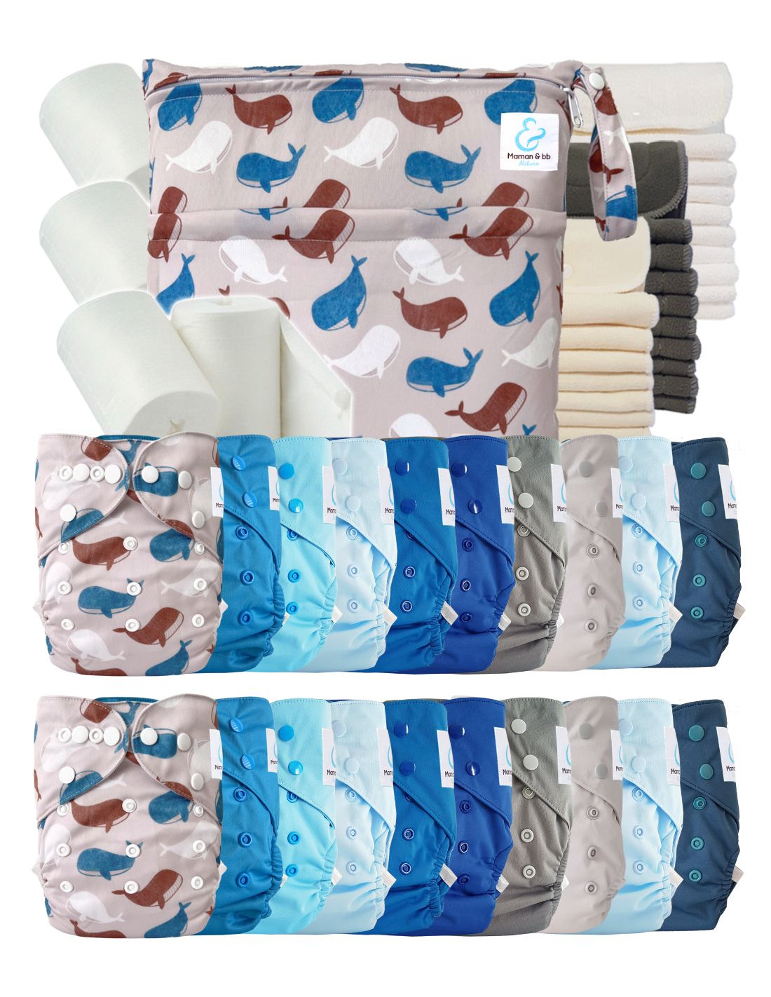 Mega pack : 20 couches lavables TE2 + 30 inserts + voiles + sac - Nautilus