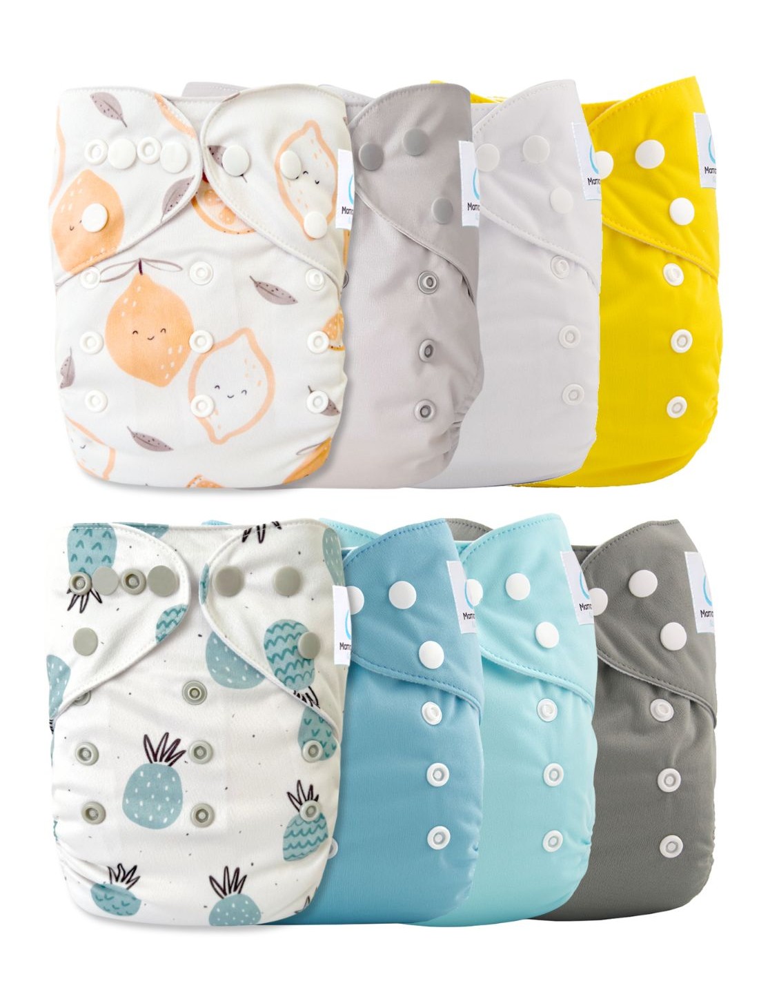 Lemon Love - Lot de 8 couches lavables évolutives + 8 inserts en microfibre