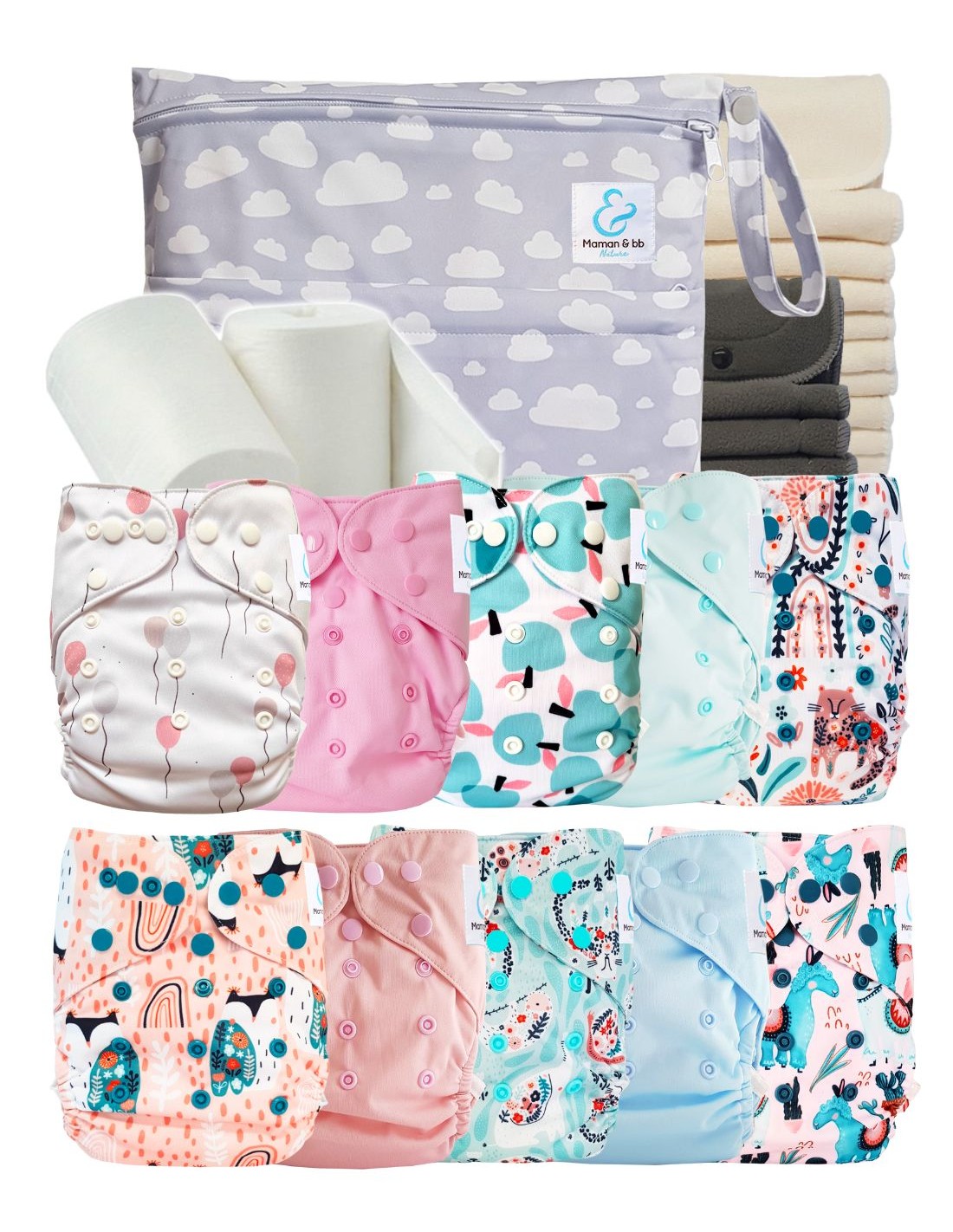 - 10 Couches Lavables tout en Deux (Te2) à double goussets.