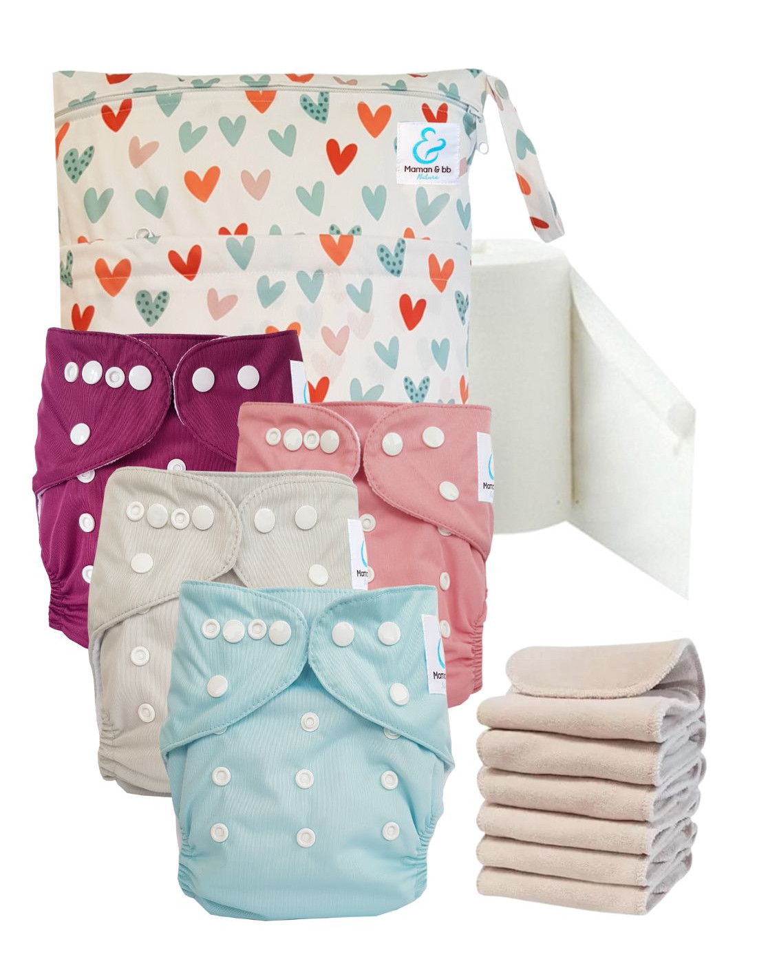 - 6 inserts en Coton et Microfibre conçus en matériaux certifiés Oeko Tex® 100 classe 1 (donc 4 inclus dans les couches)