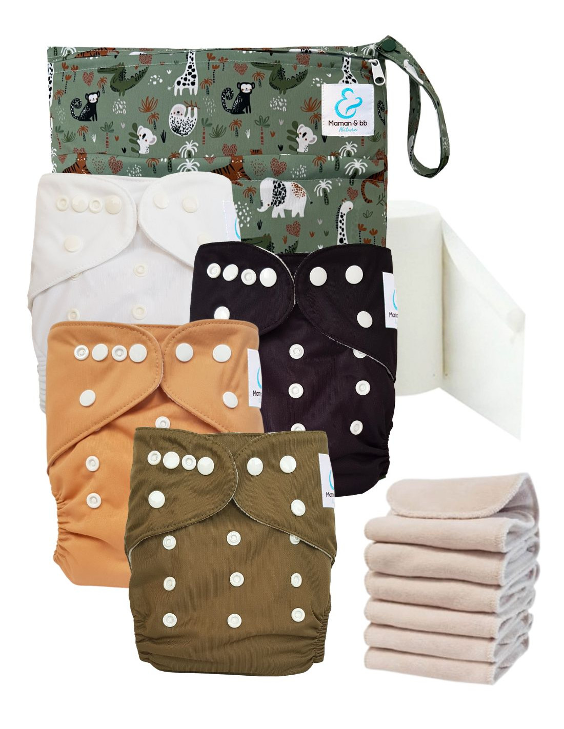 - 6 inserts en Coton et Microfibre conçus en matériaux certifiés Oeko Tex® 100 classe 1 (donc 4 inclus dans les couches)