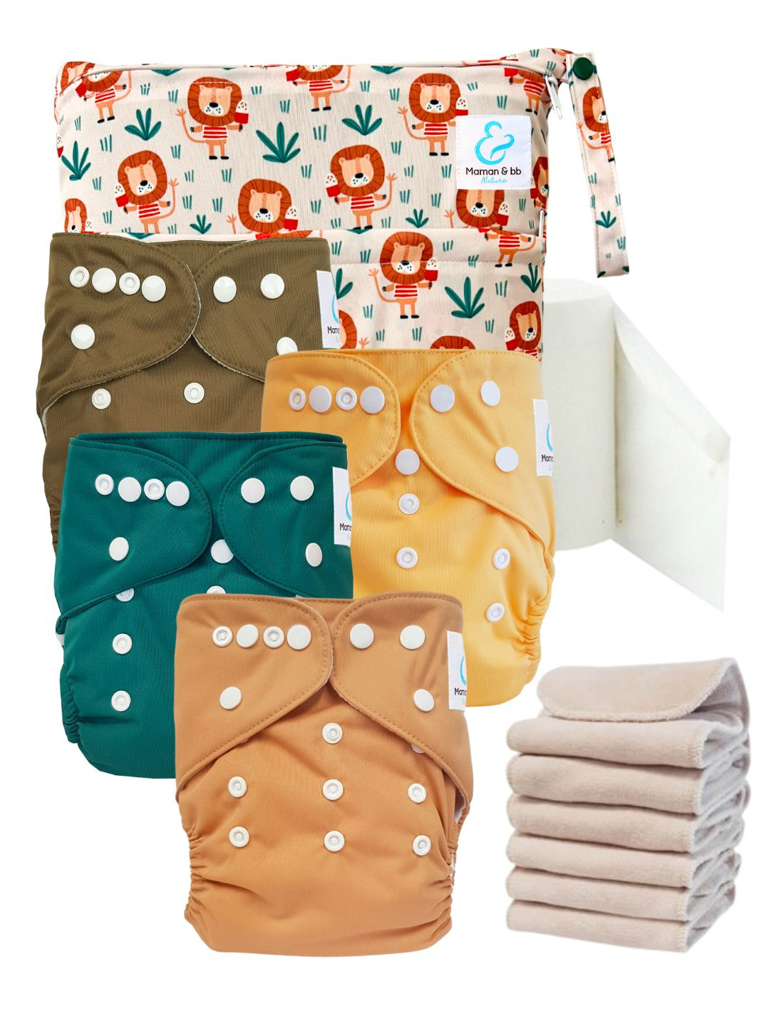 - 6 inserts en Coton et Microfibre conçus en matériaux certifiés Oeko Tex® 100 classe 1 (donc 4 inclus dans les couches)